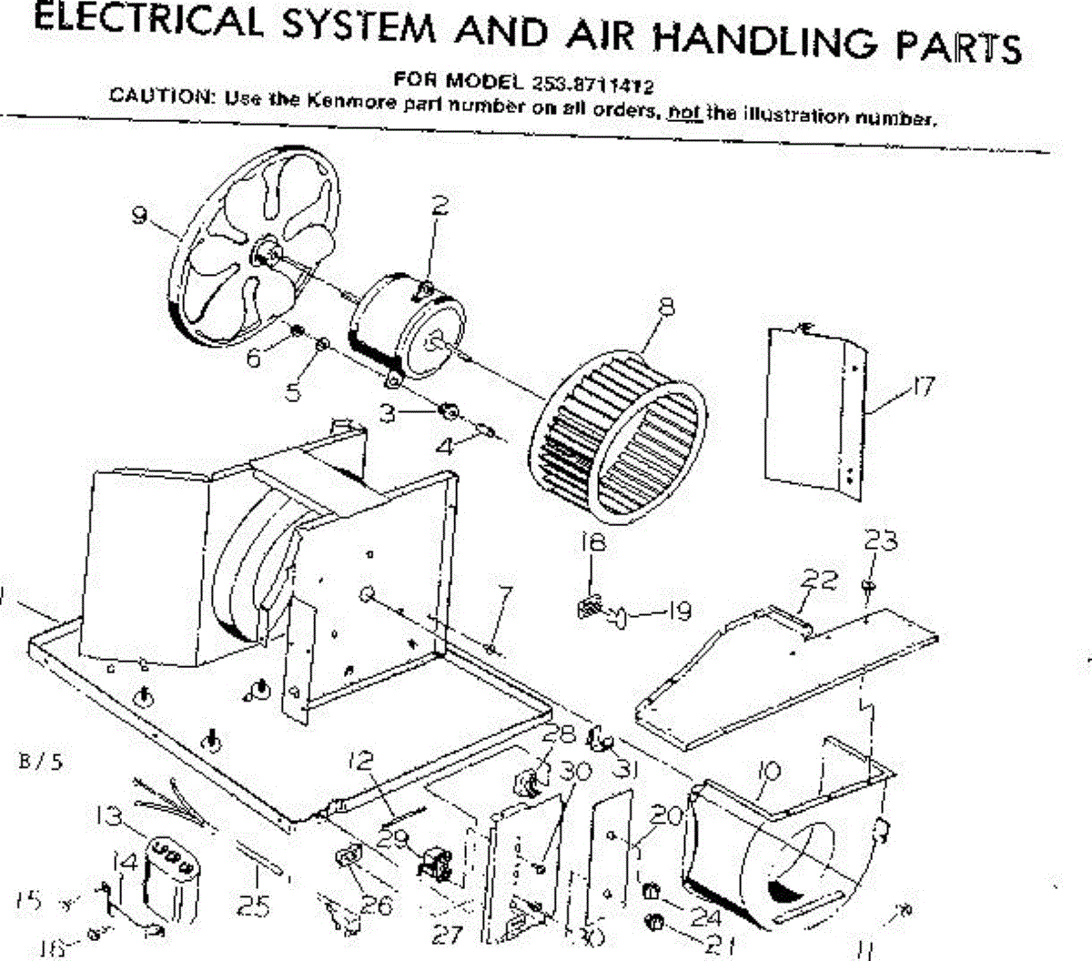 Parts for Kenmore 253.8711412 (2538711412, 253 8711412): Electrical System & Air Handling Parts