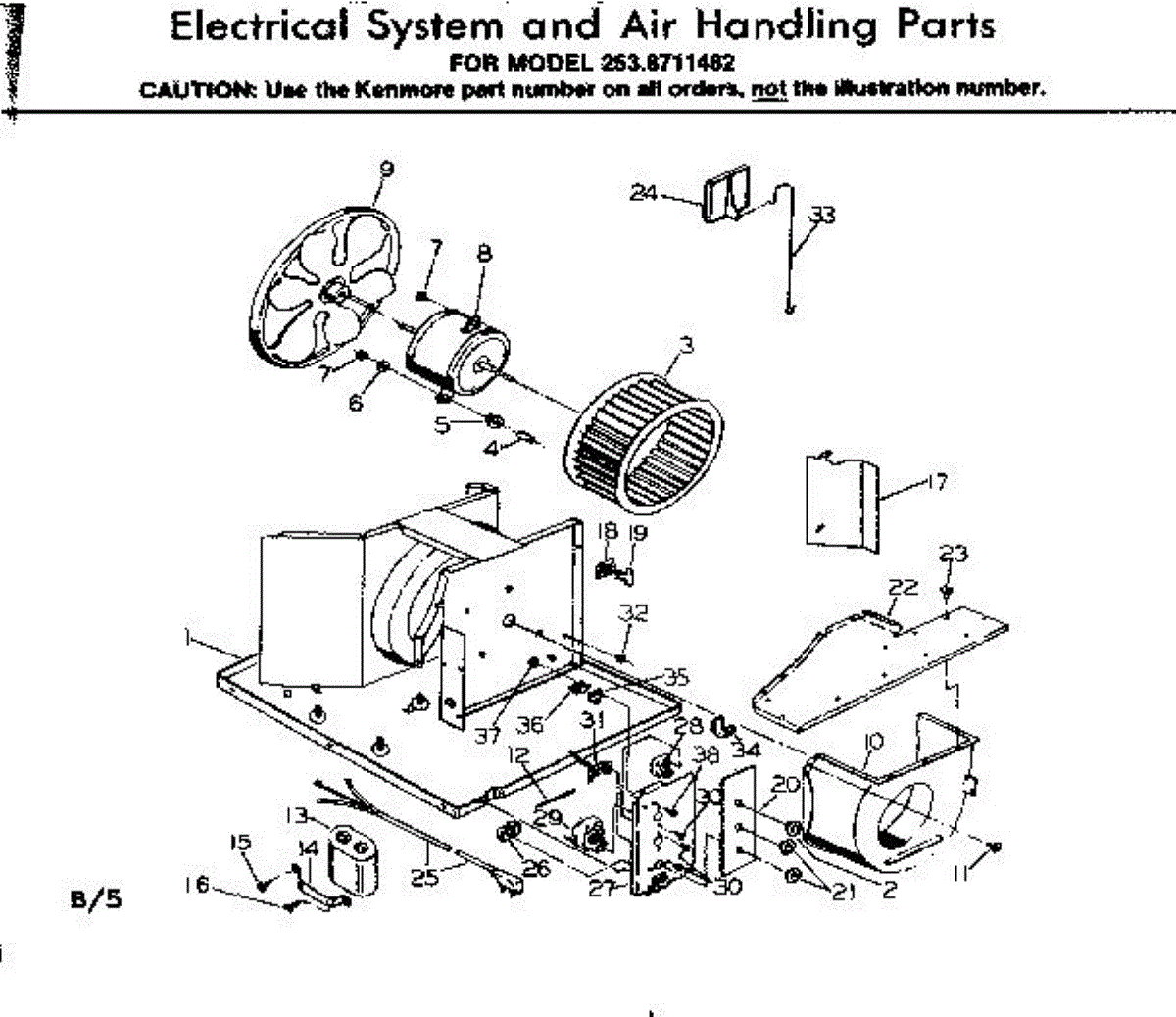 Parts for Kenmore 253.8711482 (2538711482, 253 8711482): Electrical System & Air Handling Parts