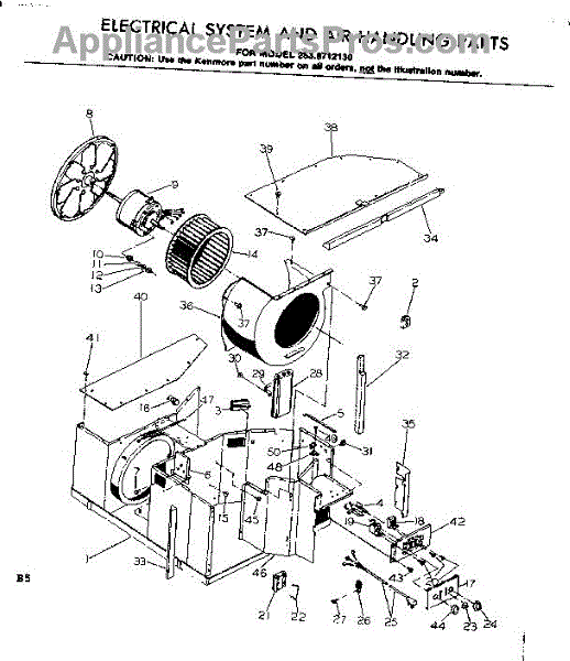 Parts for Kenmore 253.8712130 (2538712130, 253 8712130): Electrical System And Air Handling Parts