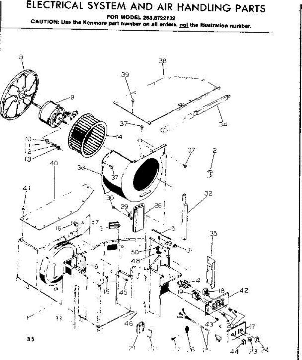 Parts for Kenmore 253.8722132 (2538722132, 253 8722132): Electrical System & Air Handling Parts
