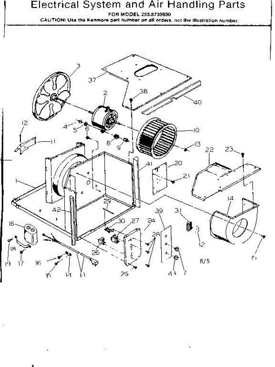 Parts for Kenmore 253.8730800 (2538730800, 253 8730800): Electrical System And Air Handling Parts