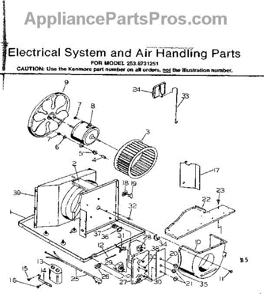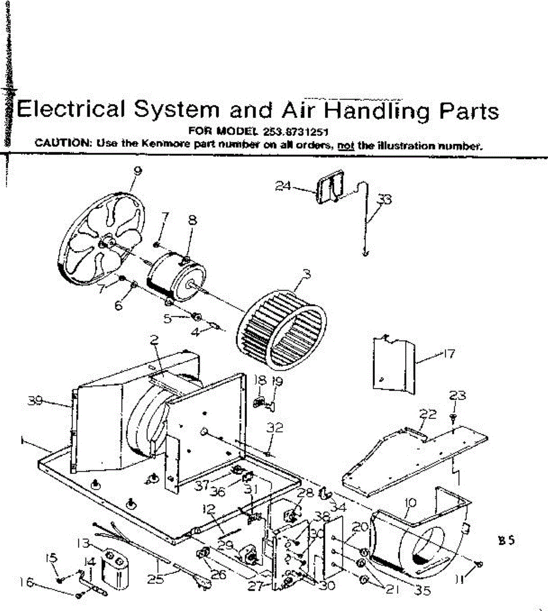 Parts for Kenmore 253.8731251 (2538731251, 253 8731251): Electrical System & Air Handling Parts