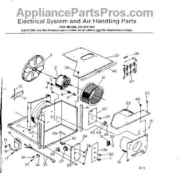 Parts for Kenmore 253.8741300 (2538741300, 253 8741300): Electrical System And Air Handling Parts