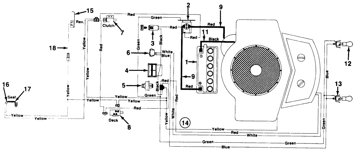 This switch spring is part of the safety system used in riding lawnmowers. This spring is located underneath the seat of all riding lawn mowers and lawn tractors. The spring is attached to two electrical contacts and is compressed when the rider is sittin