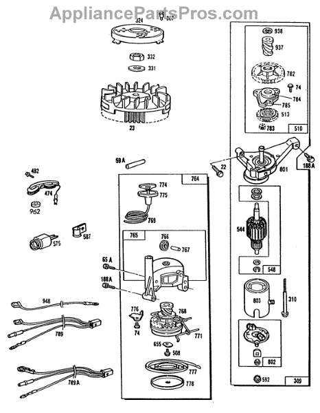 Parts for Briggs & Stratton 110782-0191-01: Electricstarter,Rewind,Wires Parts