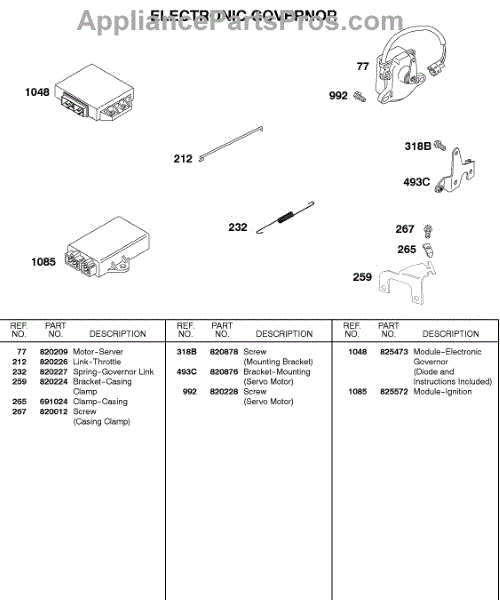 Parts for Briggs & Stratton 583447-0217-E2: Electronic Governor, Modules Parts