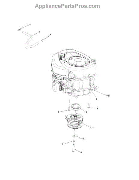 This is a replacement engine pulley. Attached to the engine crankshaft, the engine pulley drives the transmission belt of the lawn tractor. Engine pulleys can become worn and damaged with repeated use. A warning sign that damage is occurring may be a whining noise coming from the engine. A worn and damaged engine pulley can lead the belt positioned on it to wear or break, as well. To install a new engine pulley, after removing the old pulley, place a lock washer topped by a flat washer onto the engine pulley bolt. Then place the engine pulley bolt into the engine pulley's center hole from the larger pulley's side. A spacer washer is then placed on the engine pulley bolt, located on the small pulley side. The rounded side of the spacer should face up. Using a socket wrench, install the pulley till it is tight on the lawn tractor. Consult the owner's manual to find the ideal torque rating. This engine pulley is an OEM part sourced directly from the manufacturer. This pulley is designed as a replacement for the engine pulley in Poulan, Redmax, Poulan Pro, Weed Eater, McCulloch, Craftsman, Jonsered, AYP, and Husqvarna lawn tractors. The engine pulley is sold individually.