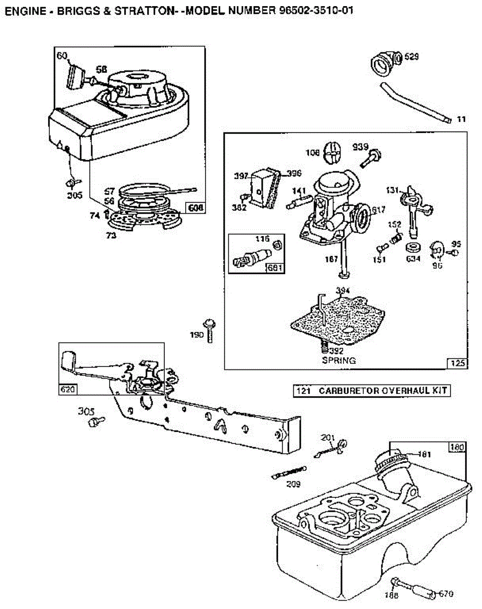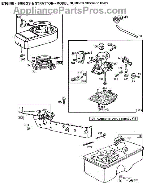 Parts for Briggs & Stratton 96502-3510-01: Engine Parts