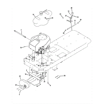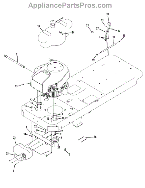 Exhaust muffler for lawn mowers and tractors. Reduces engine noise during operation. Replace if cracked, rusted, or excessively loud from wear or damage.