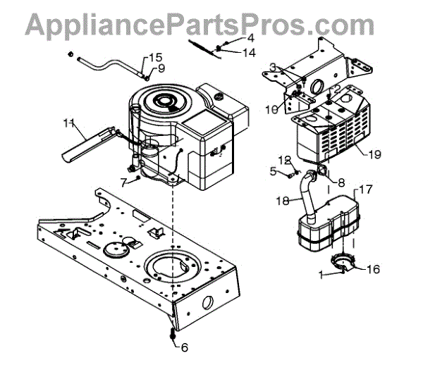 This muffler is a genuine OEM replacement part sourced directly from the manufacturer for use on lawn and garden equipment. It reduces the noise coming from the exhaust. Being a metal part exposed to the elements, it is not uncommon for mufflers to corrode over time and need replacement. As a lawnmower part, the muffler may sustain damage from debris in the yard while mowing. In either case, the muffler should be removed and replaced to keep the noise level to a minimum.The engine and damaged muffler should be cool to the touch before repairing the lawnmower. Wear work gloves and safety goggles. Remove the spark plug from the lawnmower for extra safety. Locate the bolts securing the muffler to the lawnmower and loosen them to remove the muffler. Dispose of the old muffler and align the new muffler with the bolts. Attach the new muffler and tighten the nuts. Put the spark plug back in the lawnmower. This muffler is a high-quality metal part that is individually sold. It does not come with hardware. It is designed for use on lawn mowers and lawn tractors manufactured by MTD, Ryobi, Yard Machines, Bolens, Yard-Man, Troy-Bilt, Poulan, and Husky.