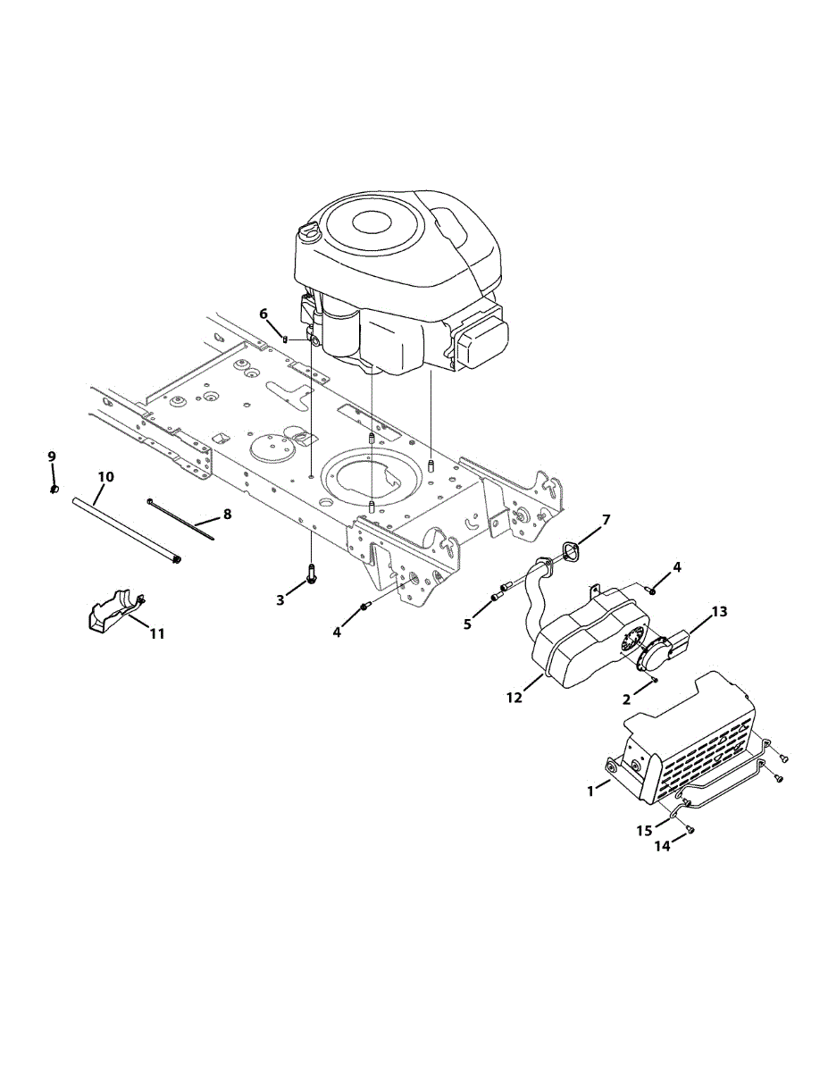 Muffler for front-engine lawn tractors and riding mowers. Replaces cracked, rusted, or damaged mufflers. Mounts to the engine exhaust port.