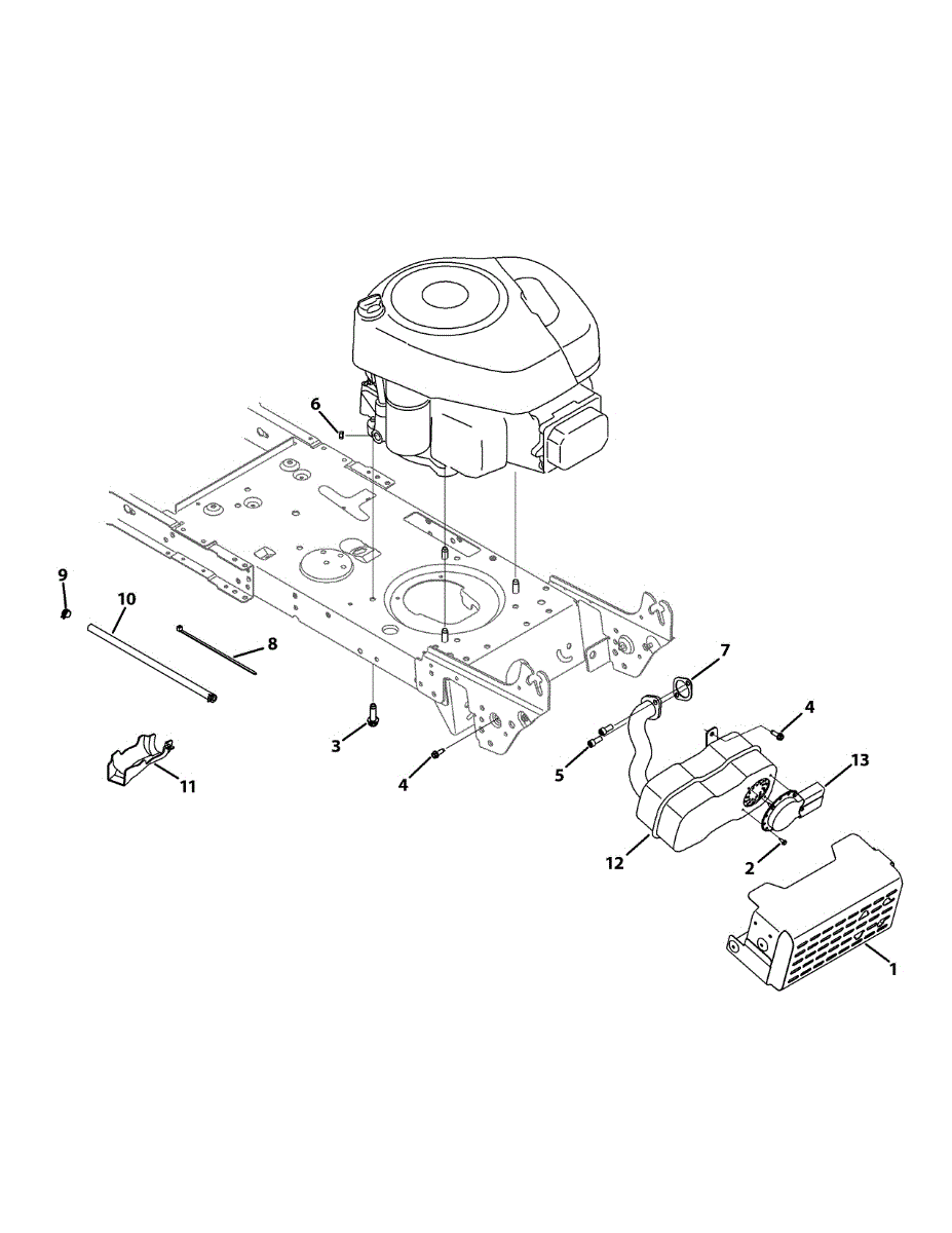 Muffler for front-engine lawn tractors and riding mowers. Replaces cracked, rusted, or damaged mufflers. Mounts to the engine exhaust port.