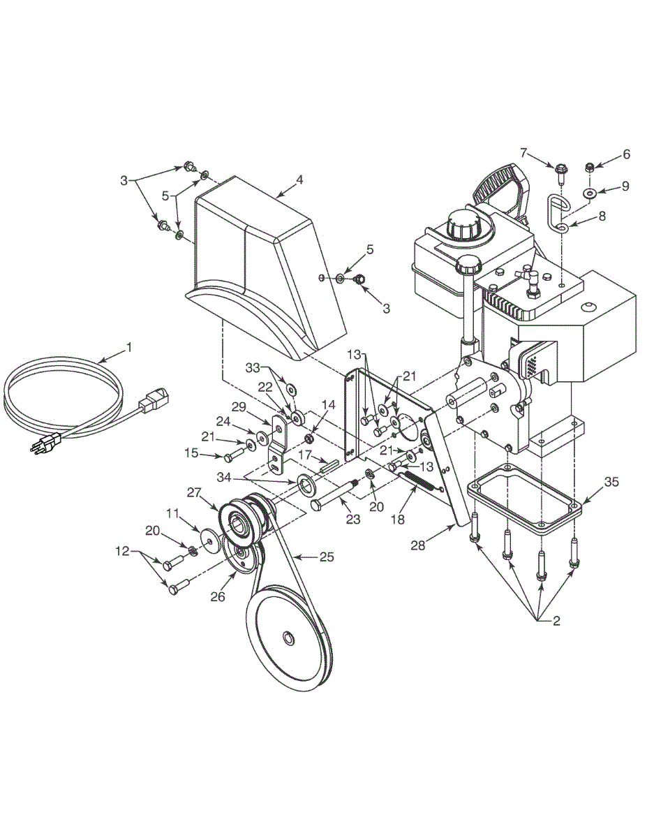 Hex cap screw for snowblowers and outdoor power equipment. Secures engine, deck, or housing components. Replace if stripped, rusted, or missing.