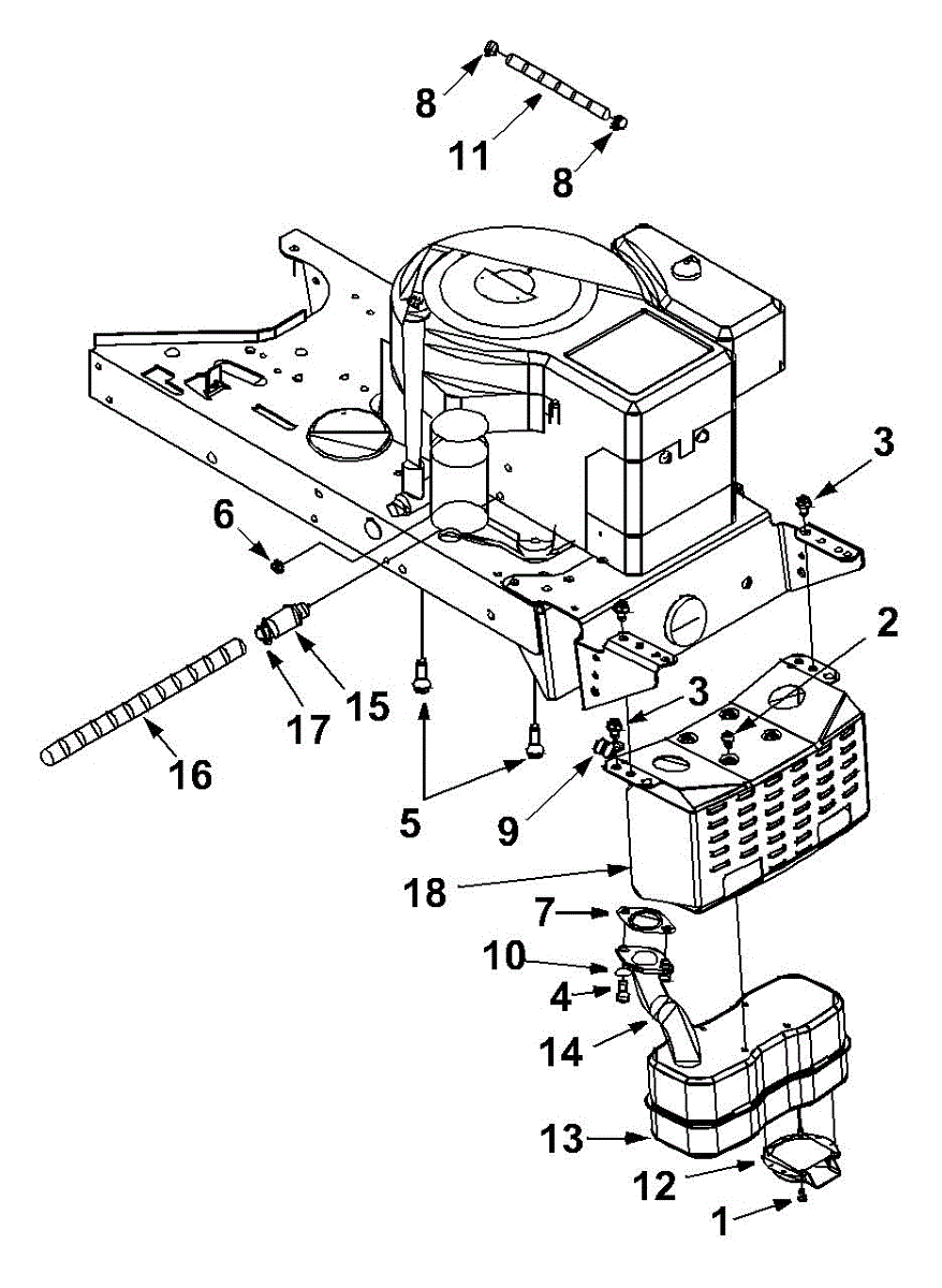Hex screw fastener for securing lawn mower components. Replace if stripped, rusted, or missing to ensure proper assembly and equipment stability.