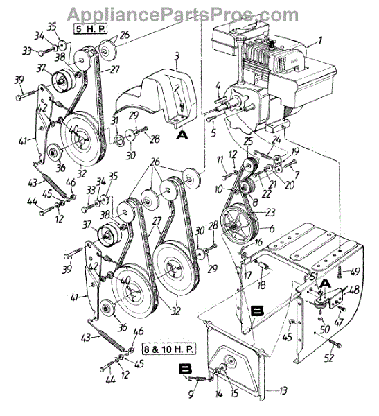 Parts for Mtd 313-660G161 / 1993: Engine And Pulley Assembly Parts