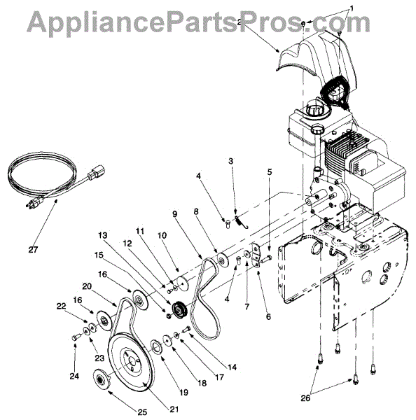 This power cord extension is a genuine MTD part, sold individually. This power cord extension can be used as a replacement part for a snowblower. This power cord extension lengthens the reach of the power cord so that the appliance can be used from a greater distance from its direct power source while it is plugged in. The power cord extension might have to be replaced at some point if the cord suffers damage that renders it beyond functionality. This could occur if the cord is frayed, if it gets wet, or if it is punctured, torn, scratched, or eroded to the point that it does not power on the snowblower when properly plugged in. Remember to wear work gloves as a safety precaution while repairing or replacing parts within an outdoor appliance. This is an OEM part sourced directly from the manufacturer. It is sold individually. This power cord extension is compatible with the following outdoor appliance brands: MTD, Toro, Cub Cadet, Ryobi, Tecumseh, Lawn Boy, Huskee, Montgomery Wards, Bolens, Yard Man, Troy-Bilt, and Yard Machines.