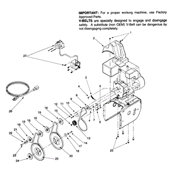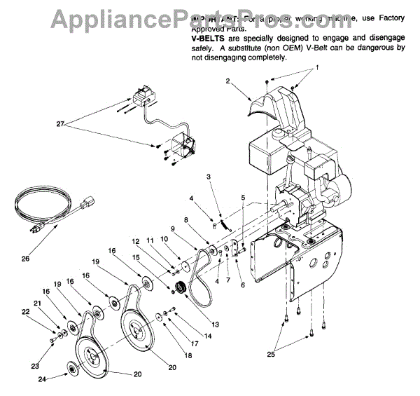 This v-belt is a genuine MTD part, sold individually. This v-belt can be used as a replacement part for a snowblower. The purpose of a v-belt is to facilitate the rotation of the auger and the wheels so the snowblower can move over surfaces and blow snow out of the way of the operator and off of surfaces.The v-belt might have to be replaced in the event that it suffers damage to the point that it can no longer facilitate the rotation of the augur or of the wheels. If the v-belt has been compromised from a puncture, tear, rip, scrape, or sufficient erosion rendering it beyond functionality, the component should be removed and replaced by this genuine OEM replacement part before using the snowblower again. Remember to always wear gloves when handling, repairing, and operating outdoor equipment.This is an OEM part sourced directly from the manufacturer. It is sold individually. This v-belt is compatible with the following outdoor appliance brands: MTD, Craftsman, Ryobi, Troy-Bilt, Yard Machines, Huskee, Montgomery Wards, Bolens, and Yard Man.