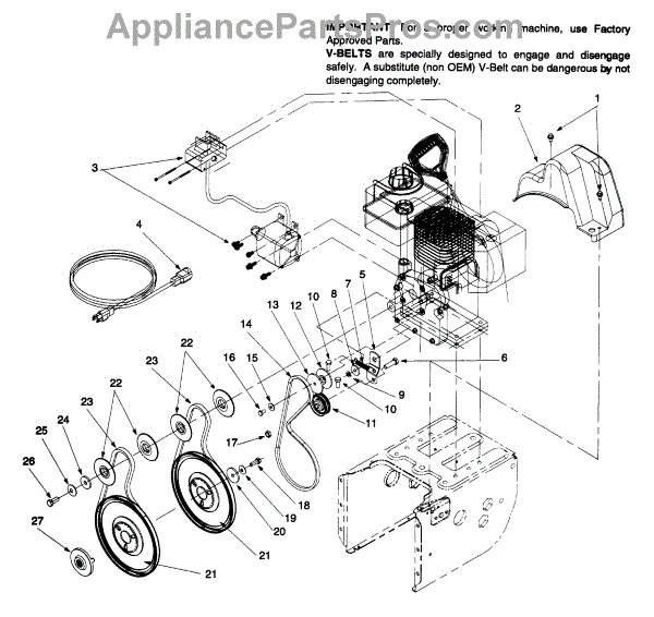 Parts for Yard Machines 31AE644E129 / 1999: Engine And V-Belts Parts