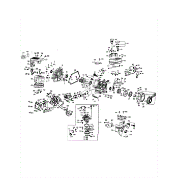 Carburetor rebuild kit for snow thrower engines. Includes gaskets and components to restore carburetor function when worn, damaged, or leaking fuel.