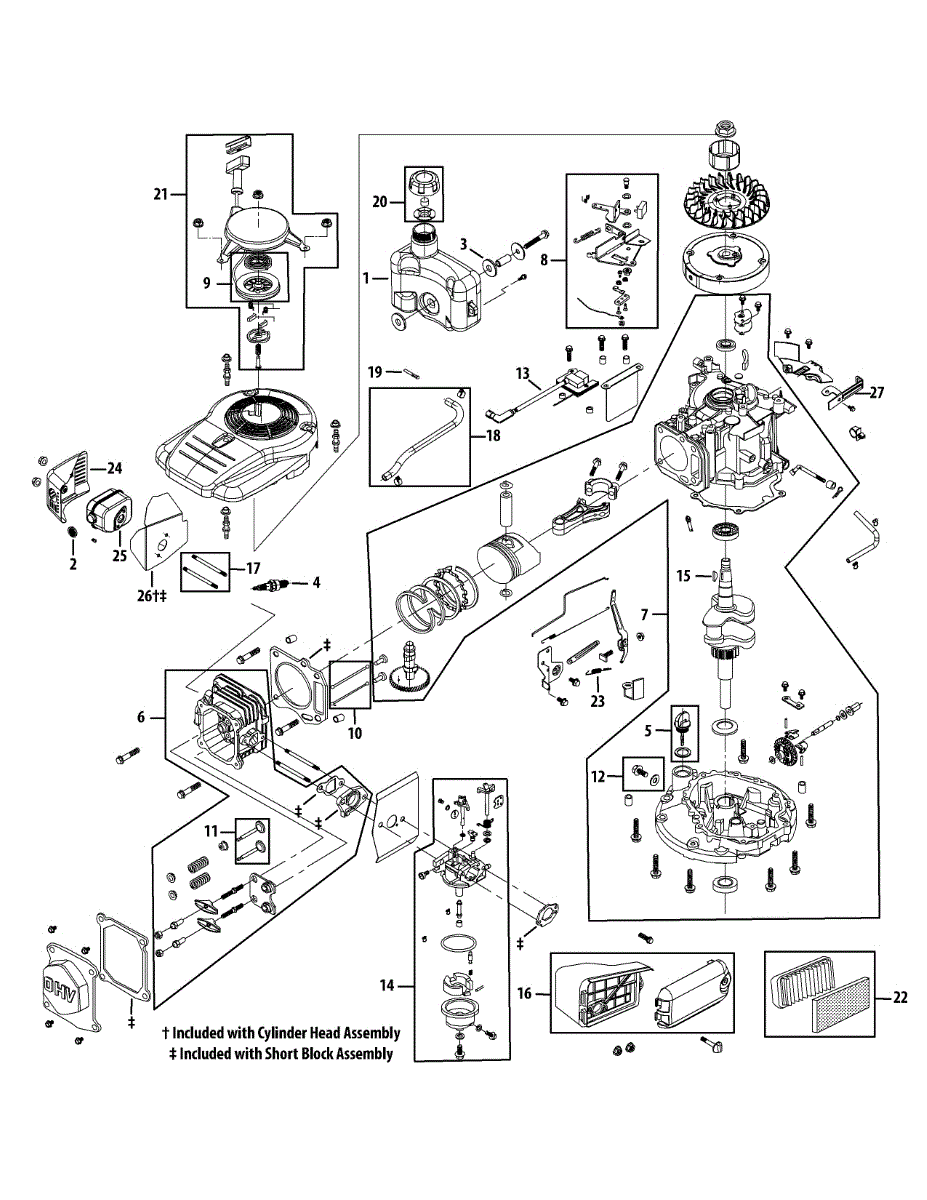 External gasket kit seals engine components to prevent oil and air leaks. Replace when gaskets show wear, cracking, or during engine maintenance. Confirm fit with your engine model number.