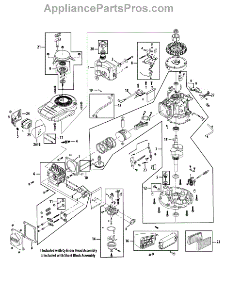 This is an air cleaner housing that is used on tillers and lawnmowers made by major manufacturers. The housing is the part that offers protection to the air filter. The air filter itself ensures that dirt and debris don't reach the engine, while the air cleaner housing keeps the filter secure and undamaged. It's made of durable plastic and has small ventilation holes to let air in and out. Over time, the air cleaner housing can become damaged or worn out and will need to be replaced.Inspect the air cleaner housing for any kind of damage like holes or breaks. Look for broken holding tabs, a cracked cover, or other damage present in the material. If any of these things are found, the air cleaner housing will need a replacement. No tools are required to replace the component. Take off the old cleaner housing and replace it with the new component.This air cleaner housing is a genuine OEM replacement part directly source from the manufacturer. It is sold individually. The housing is designed to work with lawnmowers and tillers from Yard Machines, Cub Cadet, Huskee, Yard-Man, and MTD.