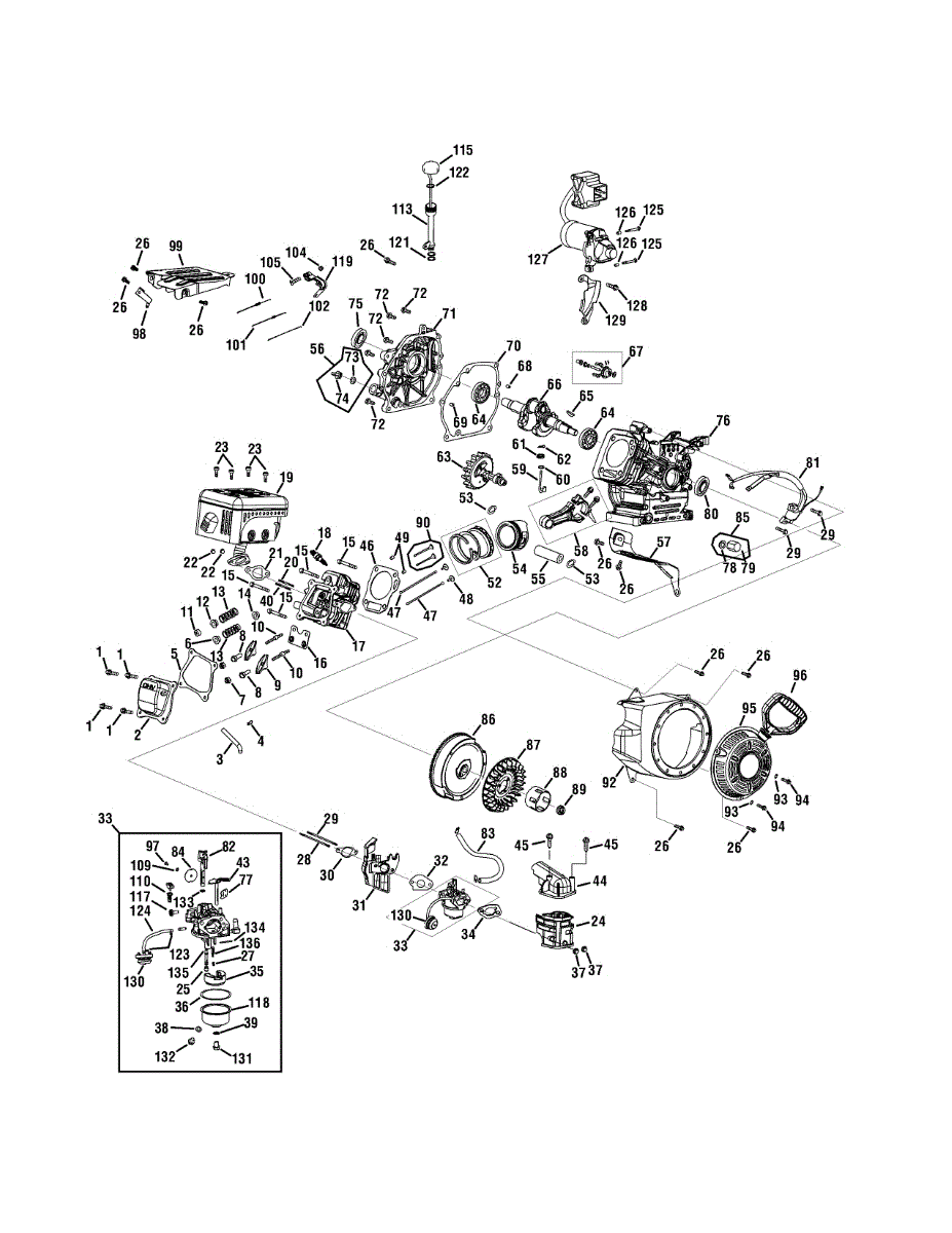Complete gasket kit seals engine components to prevent leaks and maintain compression. Replace when rebuilding engine or if gaskets show wear. Verify fit with your model number.