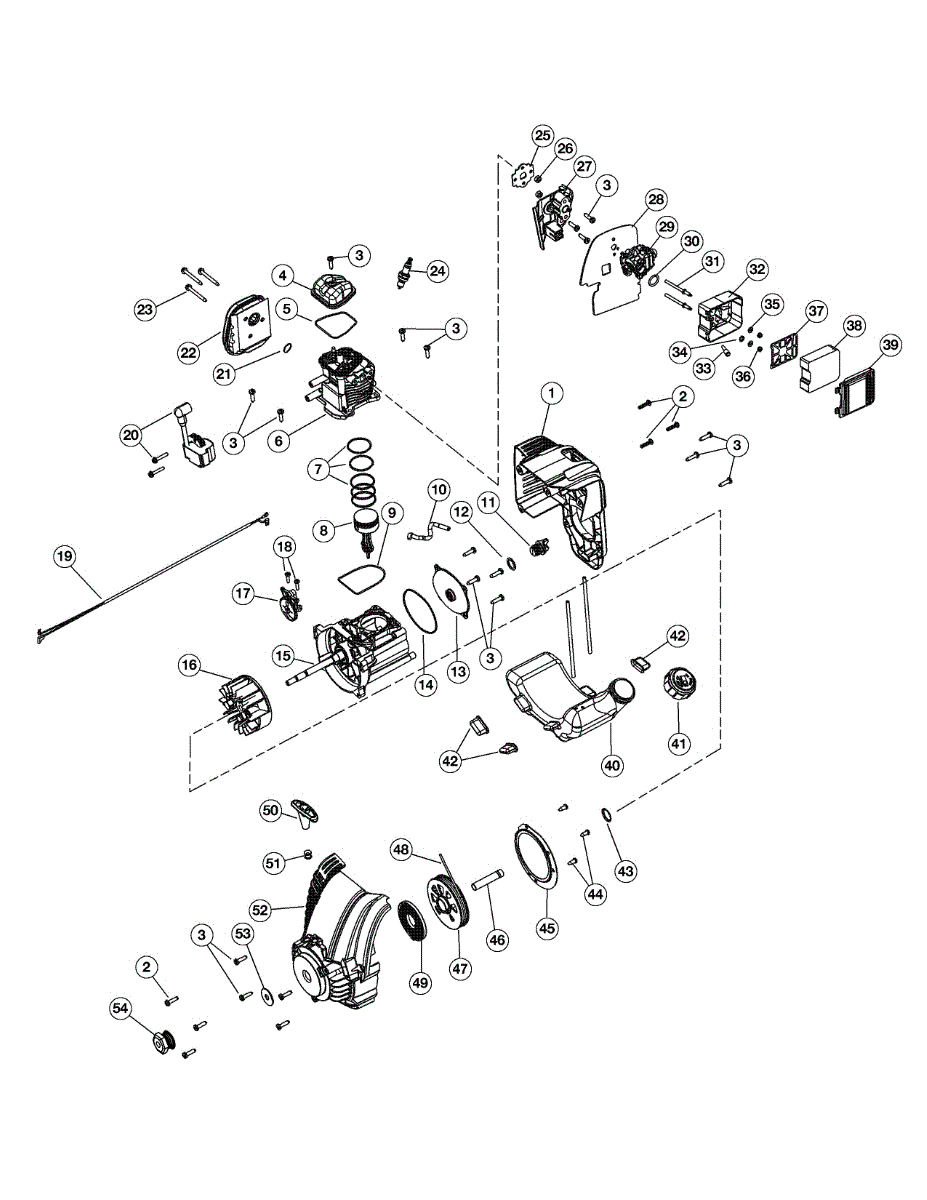 Breather housing assembly for line trimmers and tillers. Replaces cracked, broken, or damaged housings. Installs on engine to maintain proper ventilation.