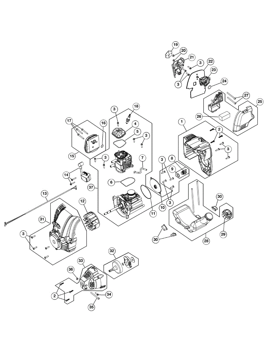 Replace a worn short block assembly when your gas line trimmer loses compression or won't start. Includes cylinder, piston, and crankcase components.