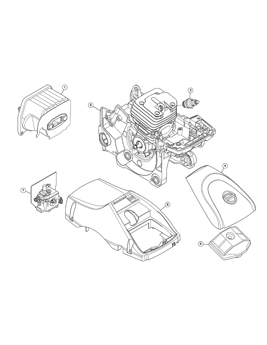 Carburetor for gas chainsaws. Mixes air and fuel in the proper ratio for engine ignition. Replace if cracked, clogged, or causing poor performance.