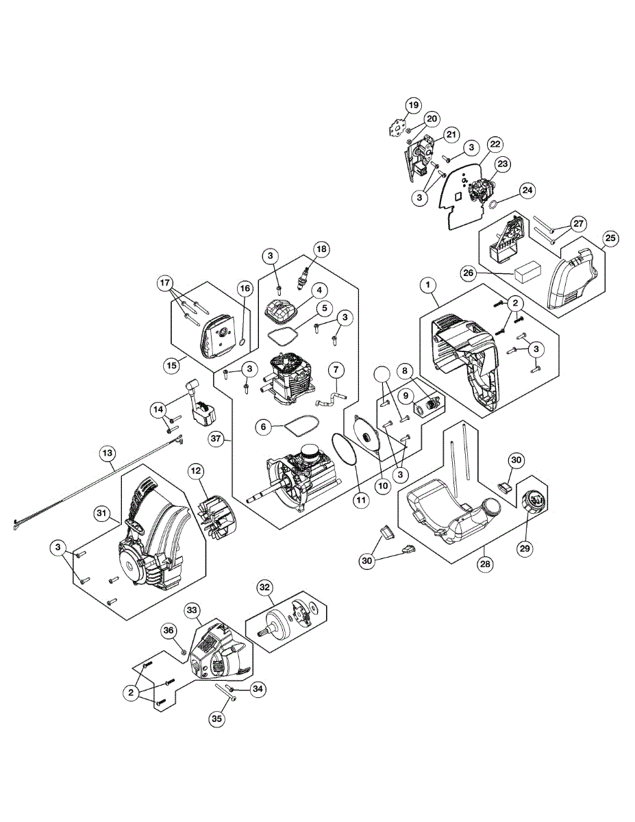 Replace a worn short block assembly when your gas line trimmer loses compression or won't start. Includes cylinder, piston, and crankcase components.