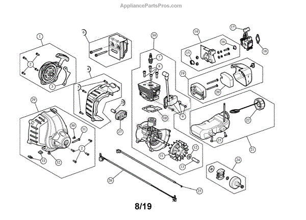 This is a genuine replacement pawl assembly for select MTD engines. This pawl assembly attaches to the crankshaft in the motor. It is responsible for rotating the shaft and flywheel as a reaction to the recoil starter rope being pulled. The part is subject to constant motion and can wear down over time or otherwise fail. If the pawl assembly goes bad, the shaft and flywheel will not be able to rotate and the engine will not run properly, if at all. A replacement part like this model will solve the problem for compatible units. This genuine OEM pawl is manufactured by MTD to exact standards to provide a fit for compatible machines from Troy-Bilt, MTD, Cub Cadet, and Yard Man, including blowers and trimmers. This pawl assembly includes the metal housing, two plastic pawls, and two springs, which makes it a complete part that requires no additional purchase. This unit is sold as an individual piece. Ensure the engine is cool prior to repair and wear gloves to ensure hand protection when working on the moving parts of the engine. Disconnect the spark plug to protect from accidental engine engagement, as well.