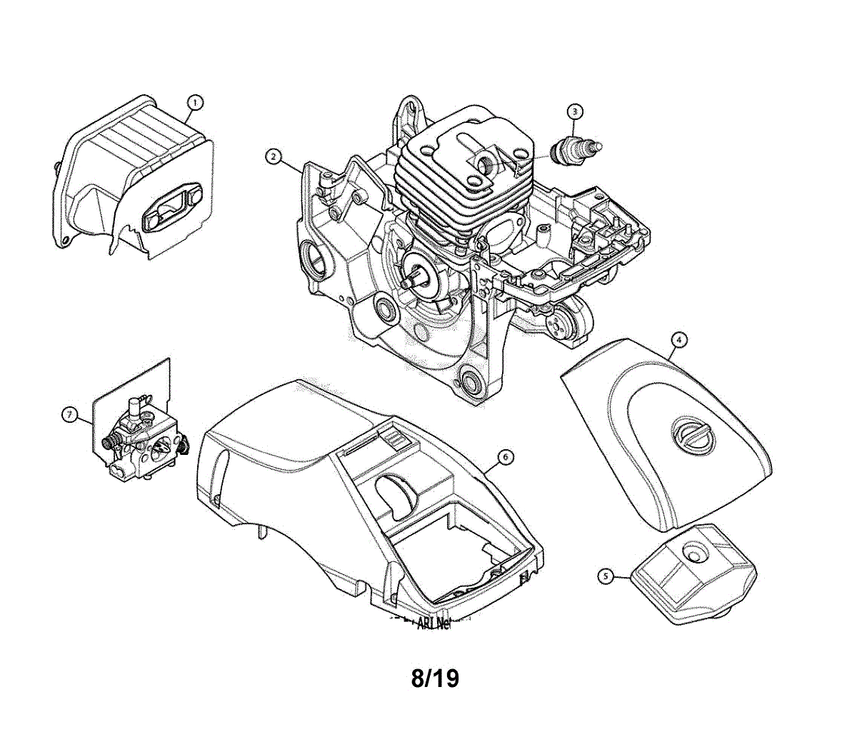 Air filter cover assembly for gas chainsaws. Protects the air filter from debris and secures it in place. Replace if cracked, broken, or missing.