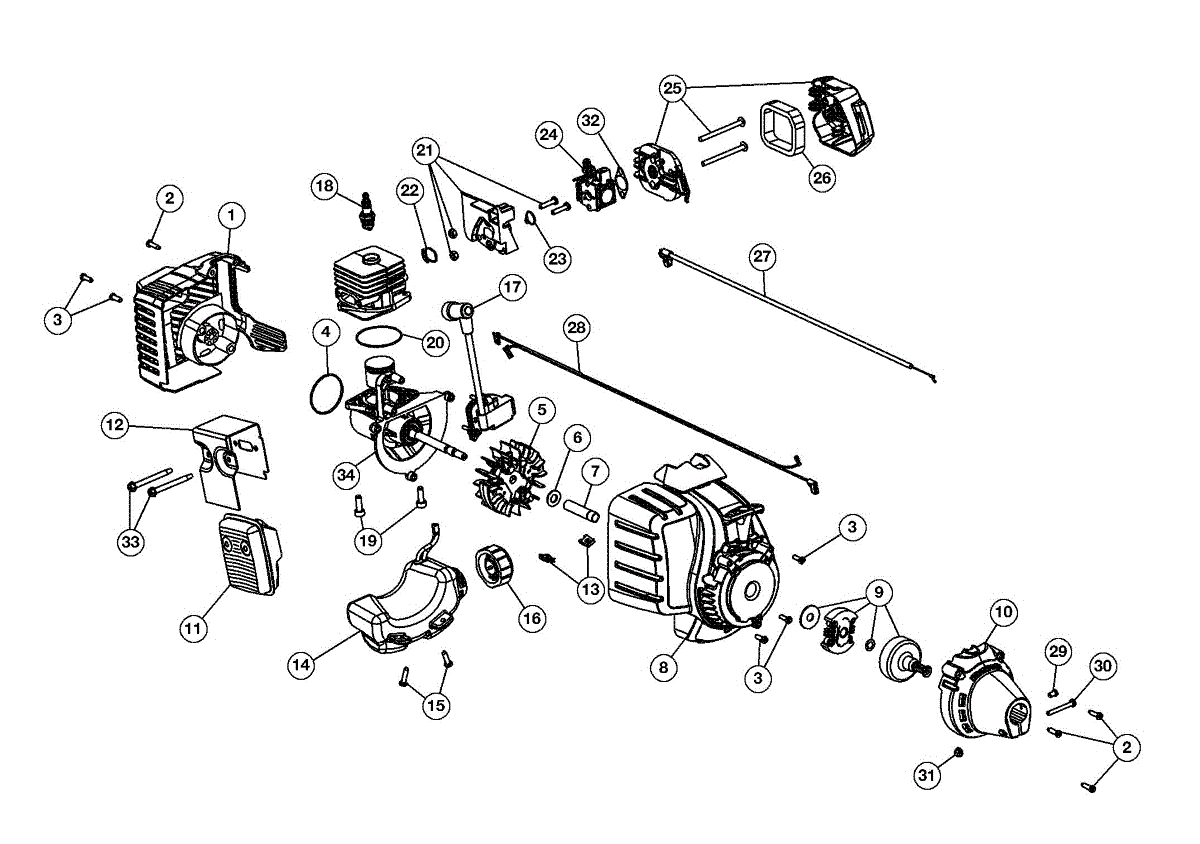 Throttle cable for gas line trimmers. Connects carburetor to throttle trigger. Replace if damaged, kinked, frayed, or broken during use.