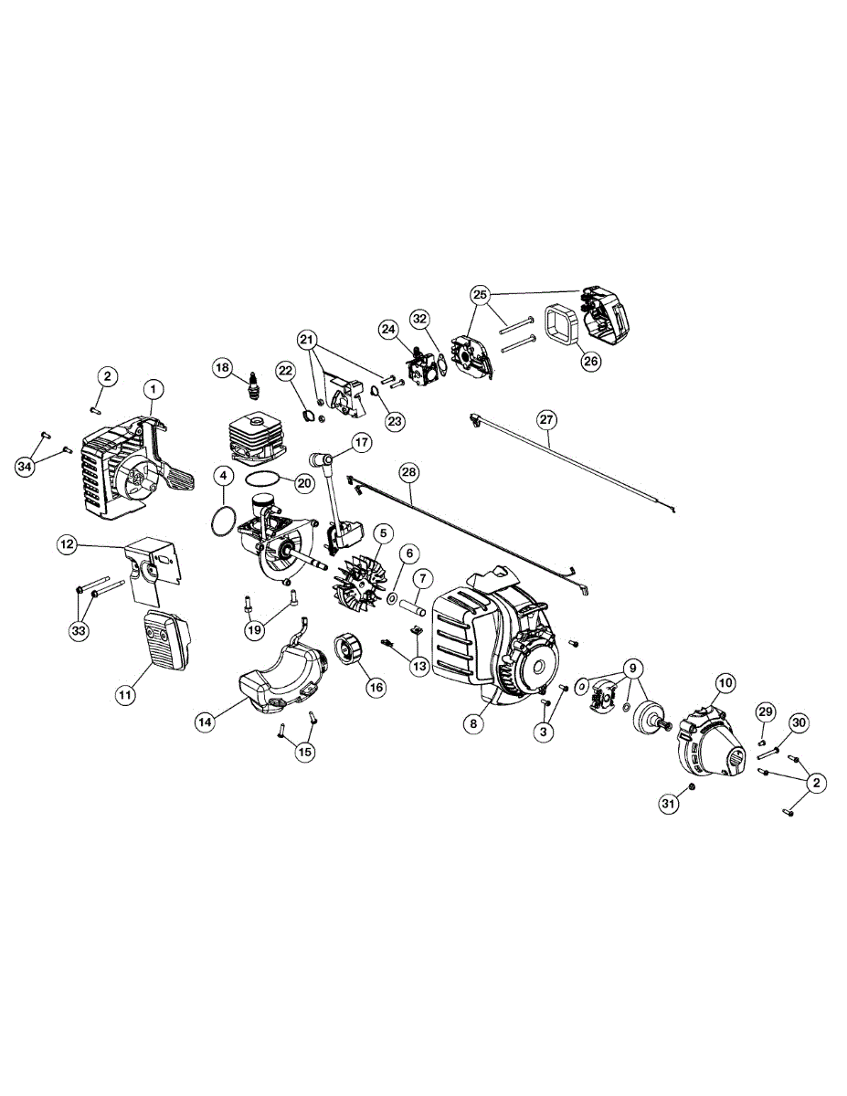 Replacement engine cover for gas line trimmers. Protects internal components from debris and damage. Order if your original cover is cracked or missing.