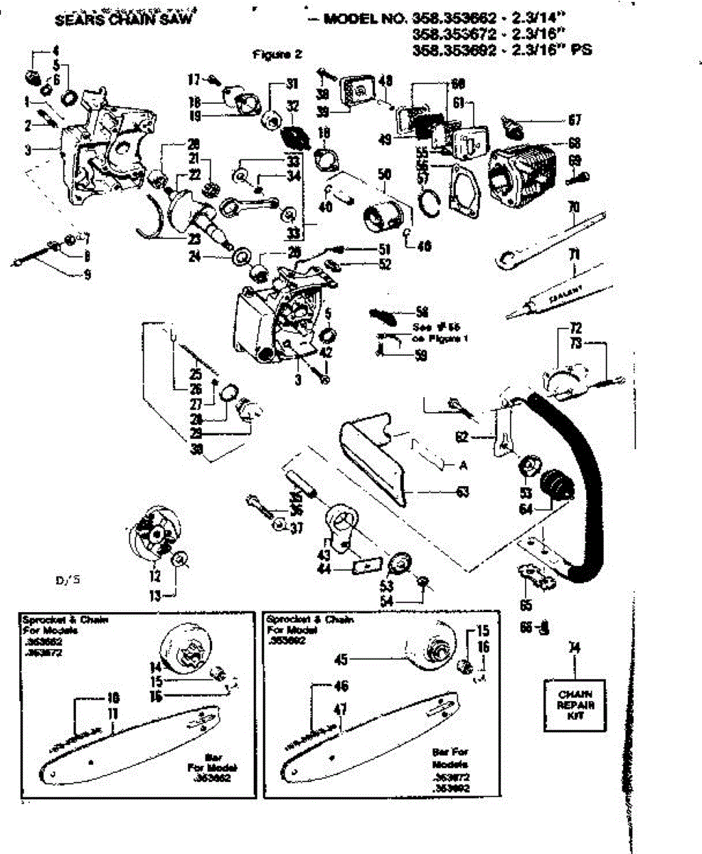 Parts for Craftsman 358353672: Engine & Bar Assembly Parts