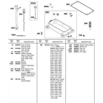 Parts for Briggs & Stratton 243431-2524-02: Engine Base, Dipstick Parts