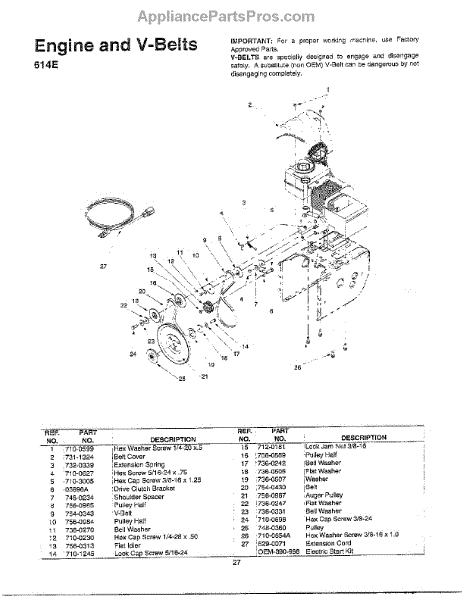 Parts for Mtd 614E: Engine / V-Belts Parts