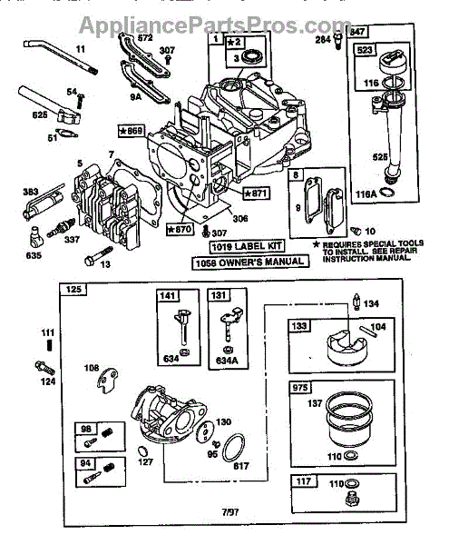 This is a carburetor overhaul kit for 3.5 to 4 HP Max Series Quantum and 5 HP Industrial Plus Engines. It is secured to the side or top of a lawnmower engine, depending on the manufacturer. The carburetor is crucial to the overall performance of an engine because it is responsible for mixing the right amounts of air and fuel. The fuel from the fuel tank flows through a hose into the carburetor, which allows it to drip into a bowl. The carburetor can become dirty or clogged over time for a variety of reasons. When this happens, it is often a good idea to take it apart and replace the components inside. There are other telltale signs that the carburetor needs an overhaul or repair. These include an engine that won't start, an engine that's running lean, an engine that's running rich, and one that's flooded. This high-quality carburetor overhaul kit comes with everything needed to repair or rebuild a carburetor, including gaskets, needle, float, seals, and an instruction manual. Aside from lawnmowers, it works with specific models of leaf blower/vacuums, generators, pressure washers, wood chippers, and small engines from Briggs & Stratton, Craftsman, Cub Cadet, Lawn-Boy, MTD, Murray, Simplicity, and Toro. It is an OEM product sourced directly from the manufacturer and is sold individually. Please refer to the diagram of the specific model for the correct location and application of the components.