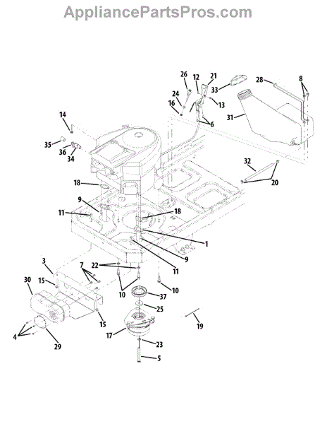 Engine drive pulley holds and drives the belt to turn the engine and power your riding mower. Replace if worn, cracked, or causing belt slippage. Verify fit with your model number for proper operation.