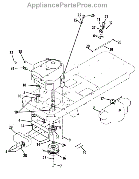 Engine drive pulley holds and drives the belt to turn the engine and power your riding mower. Replace if worn, cracked, or causing belt slippage. Verify fit with your model number for proper operation.