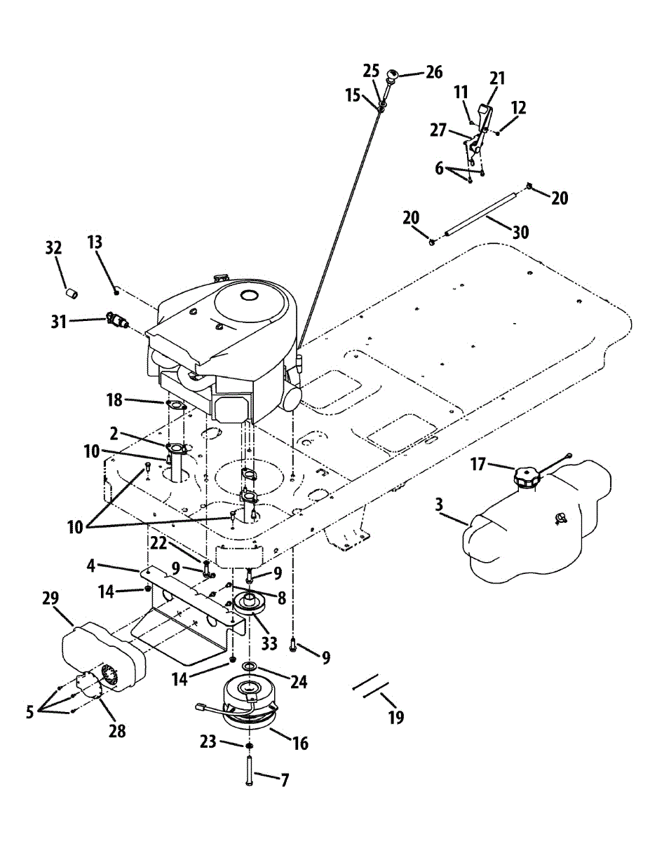 Secures gas tanks, housings, and components on lawn equipment. Replace when stripped, rusted, or loose. Verify thread size and length match your model.