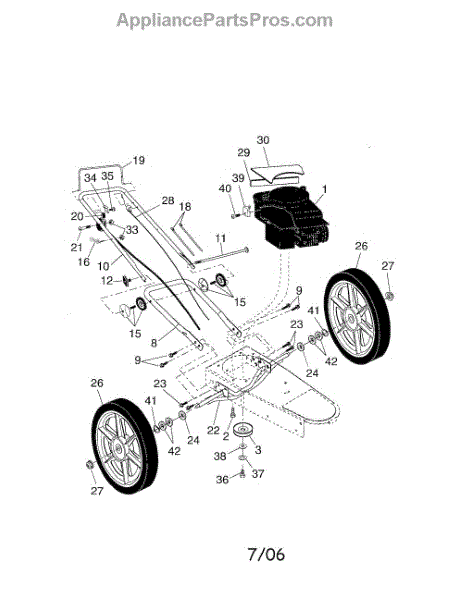 Parts for Weedeater 96176000100: Engine / Control Bar / Wheels Parts