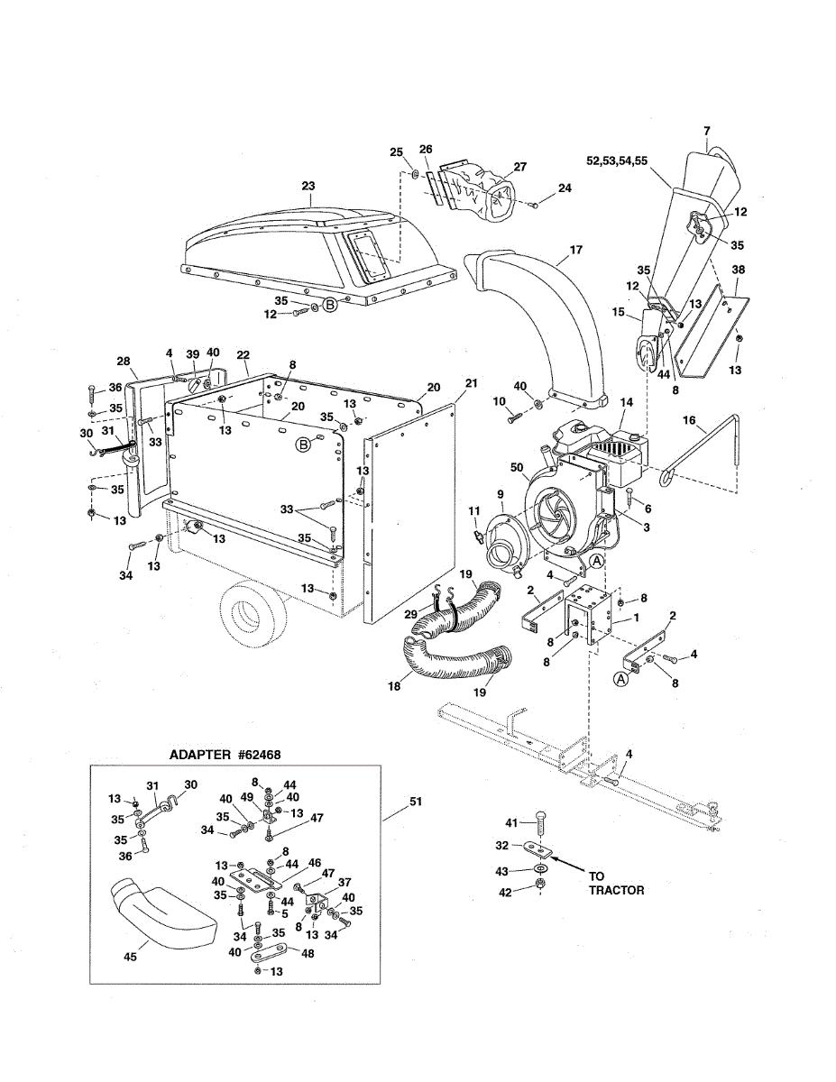 Replacement deck adapter for chipper shredders and lawn vacuums. Connects vacuum attachment to unit deck. Replace if cracked, broken, or damaged.