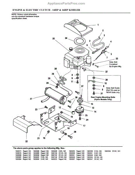 Parts for Simplicity 1693090: Engine & Electric Clutch Parts