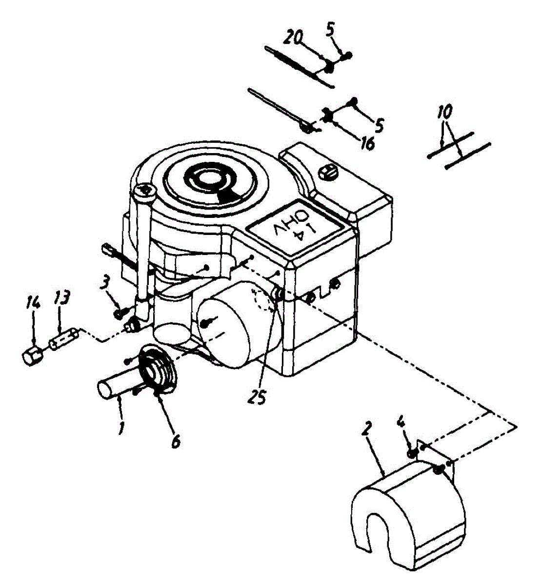 Hex screw fastener for securing lawn mower components. Replace if stripped, rusted, or missing to ensure proper assembly and equipment stability.