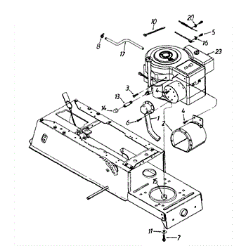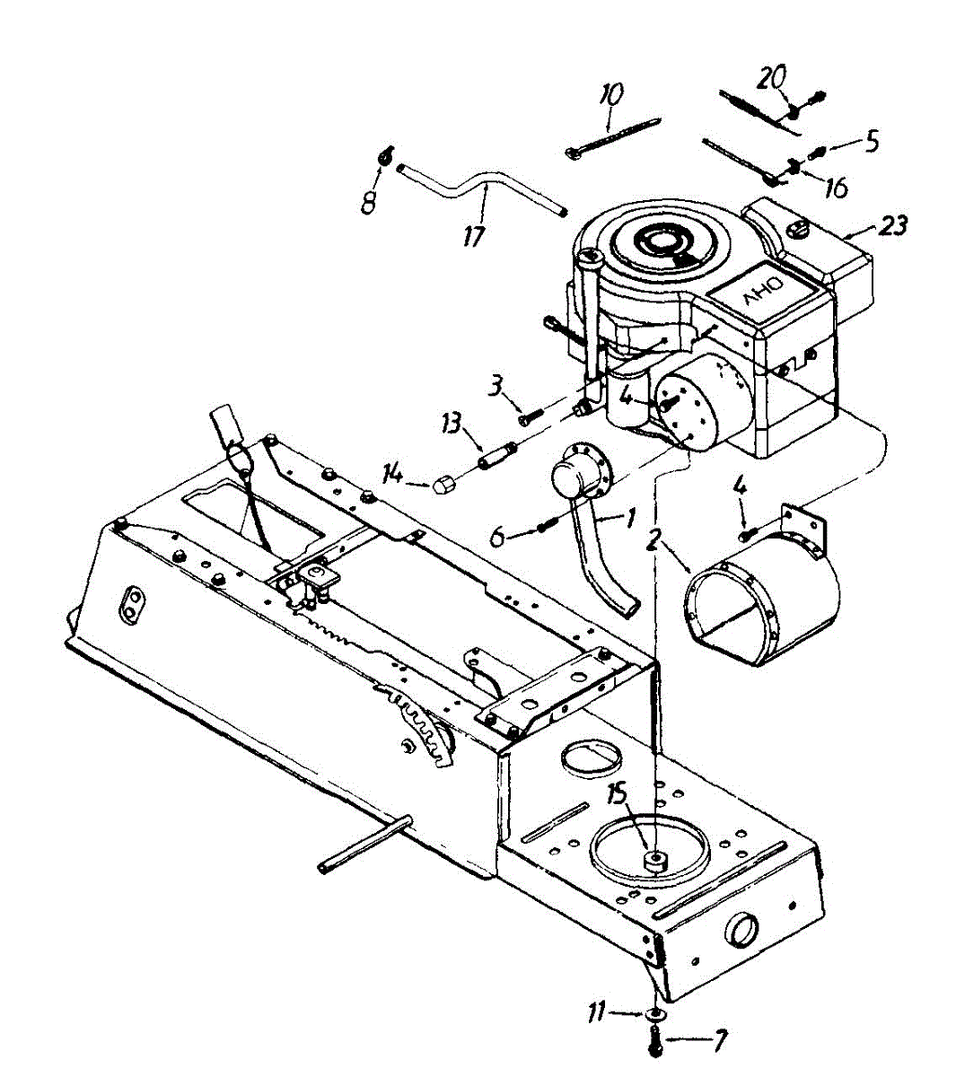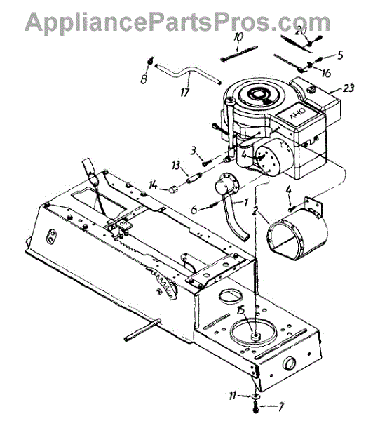 Hex screw fastener for securing lawn mower components. Replace if stripped, rusted, or missing to ensure proper assembly and equipment stability.