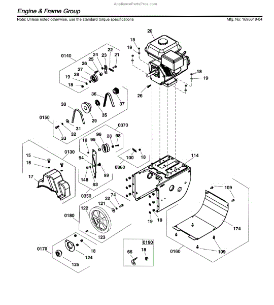 Parts for Briggs & Stratton 1696619-04: Engine & Frame Parts