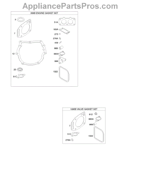 Parts for Briggs & Stratton 381777-0112-E1: Engine Gasket Set, Valve Gasket Set Parts