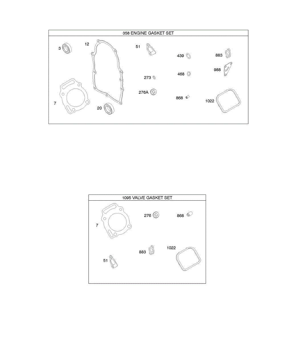 Parts for Briggs & Stratton 389447-0110-E1: Engine Gasket Set, Valve Gasket Set Parts