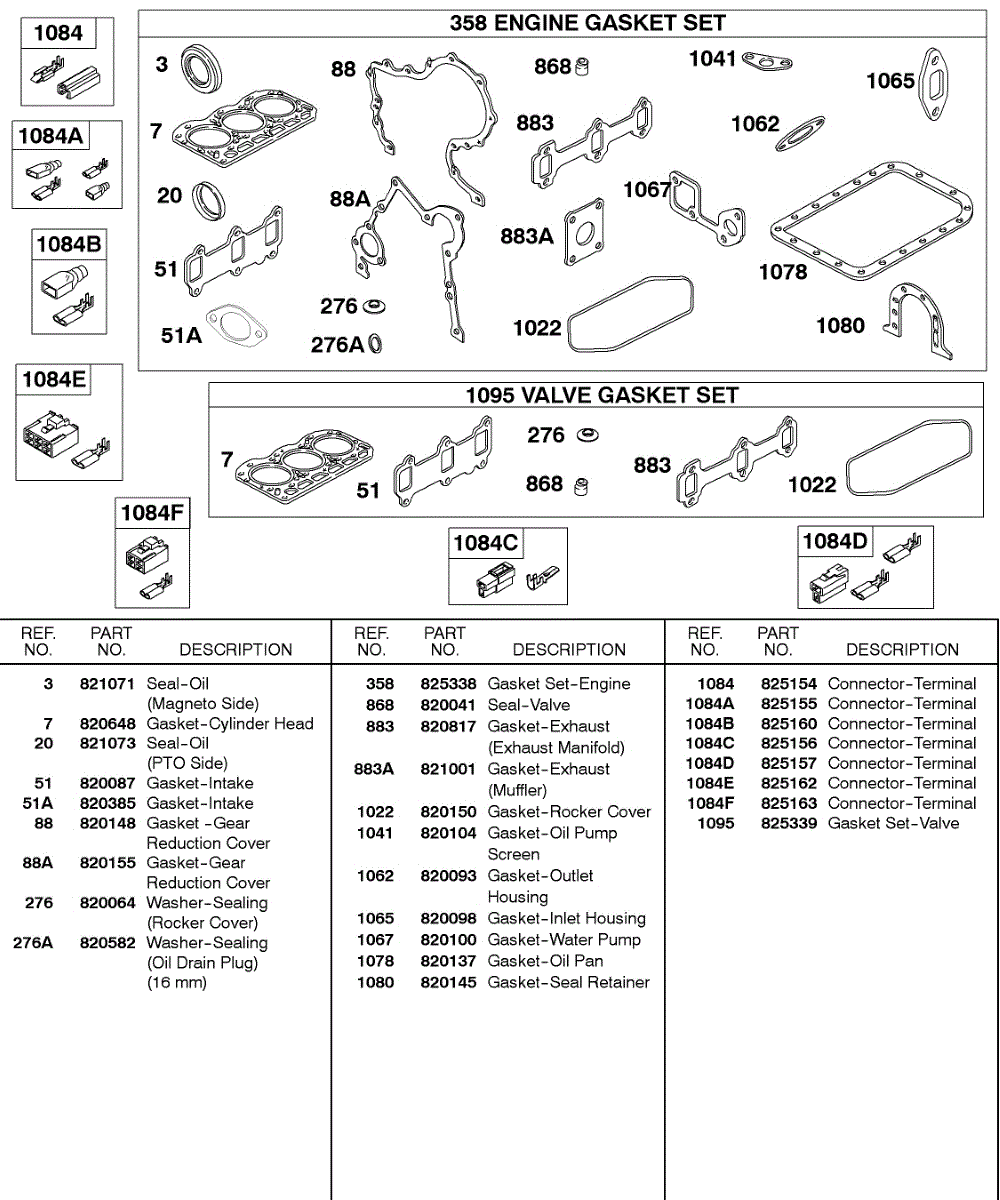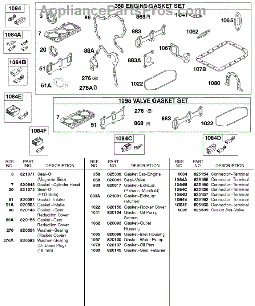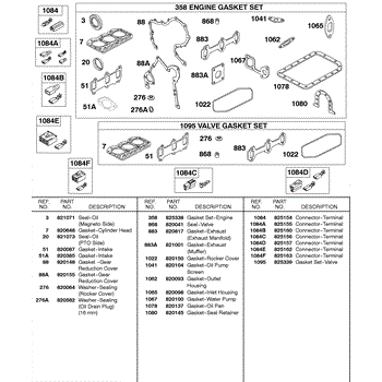 Parts for Briggs & Stratton 581447-0375-E2: Engine Gasket Set, Valve Gasket Set, Connectors Parts